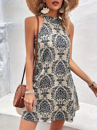 If you’re thinking this looks a little bit like a boss lady and a holiday in Santorini had a love child - you’re spot on. The flowy fabric and damask motifs are all kinds of elegant, while the sleeveless cut and flared hem keep things casual enough for day drinking, running errands or even catching a matinee show. That tie-up detail at the back really brings it together to create a relaxed silhouette that’s not just comfortable, but also flatters just about every body type with zero effort. Doesn’t cling or hold too much structure, which means you don’t have to worry about visible bra lines or pressing pause on that bagel binge.